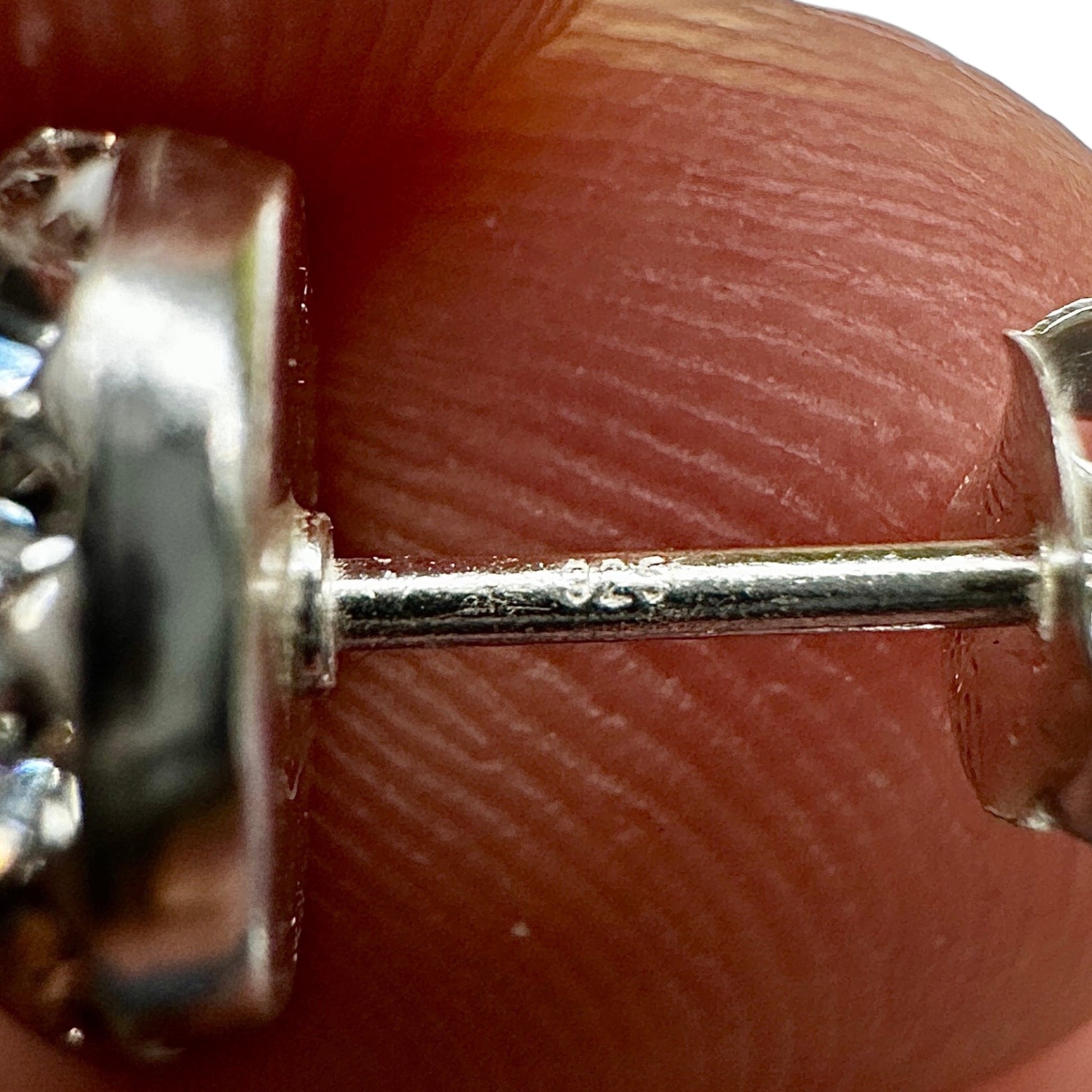 Sterling Silver Stud Earrings 925 Crystal Halo Round Stud Earrings