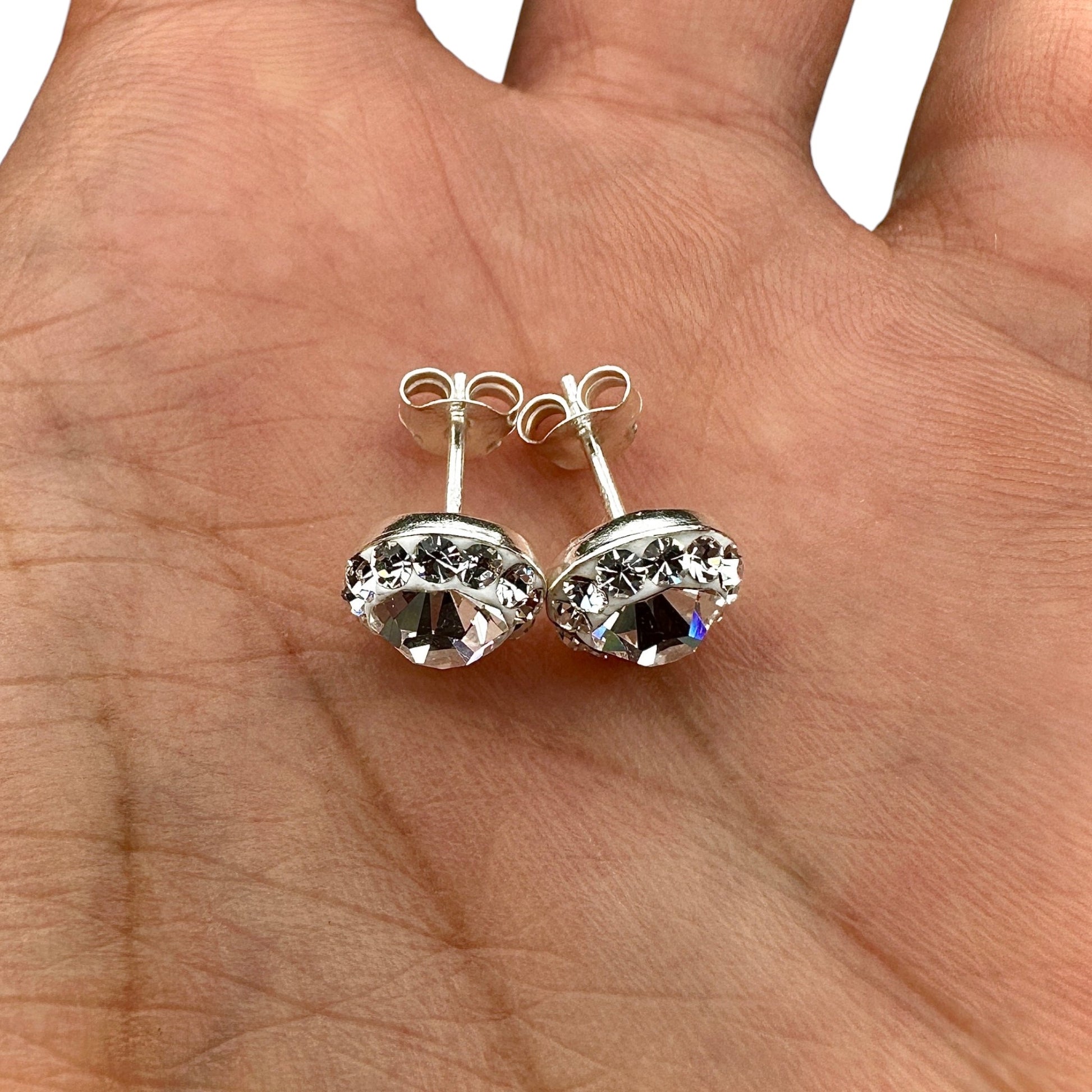 Sterling Silver Stud Earrings in 925 sterling silver with crystal halo sparkle designed for elegant everyday wear.