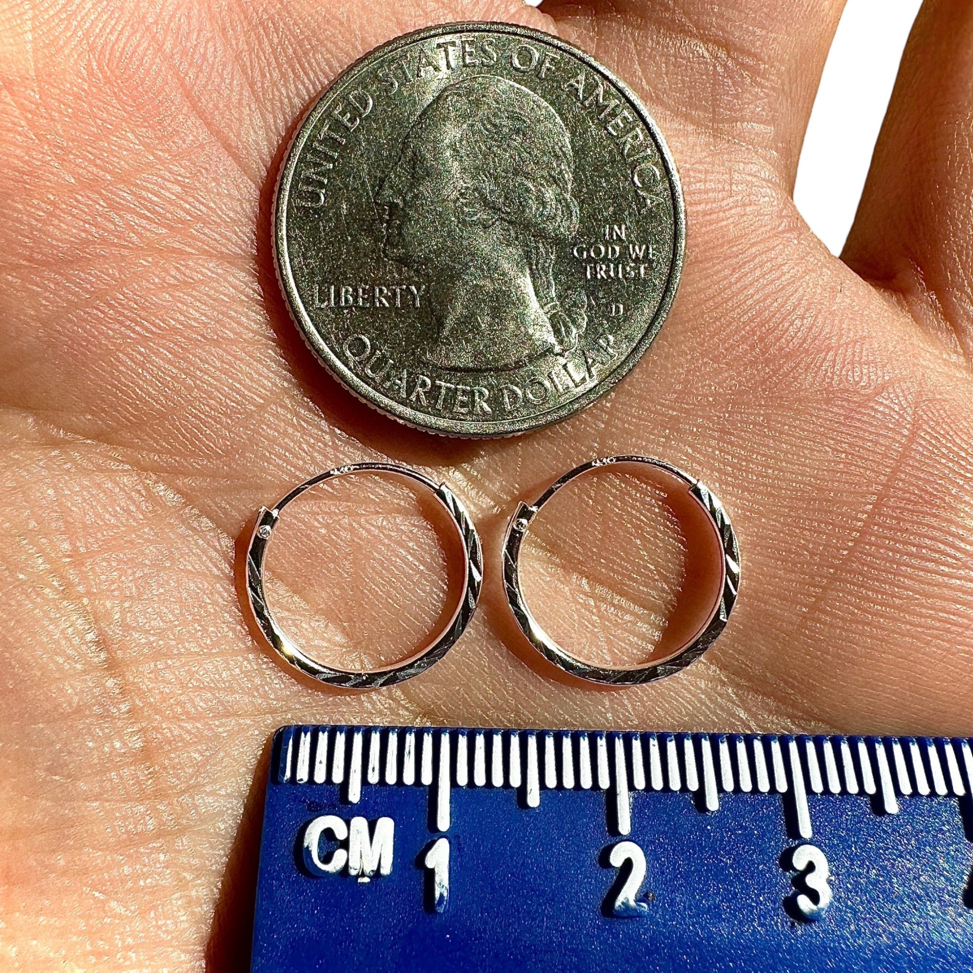 Sterling Silver Hoop Earrings 14mm Diamond Cut Small Hoops