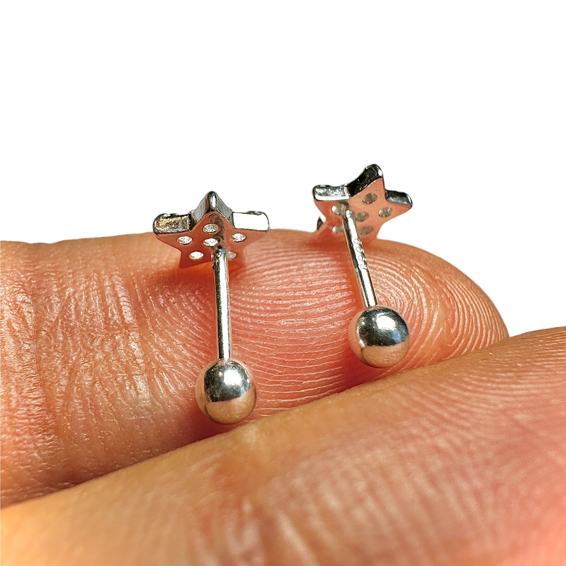 Sterling Silver Star Stud Earrings 7x5mm CZ Tiny Minimalist Silver Gift